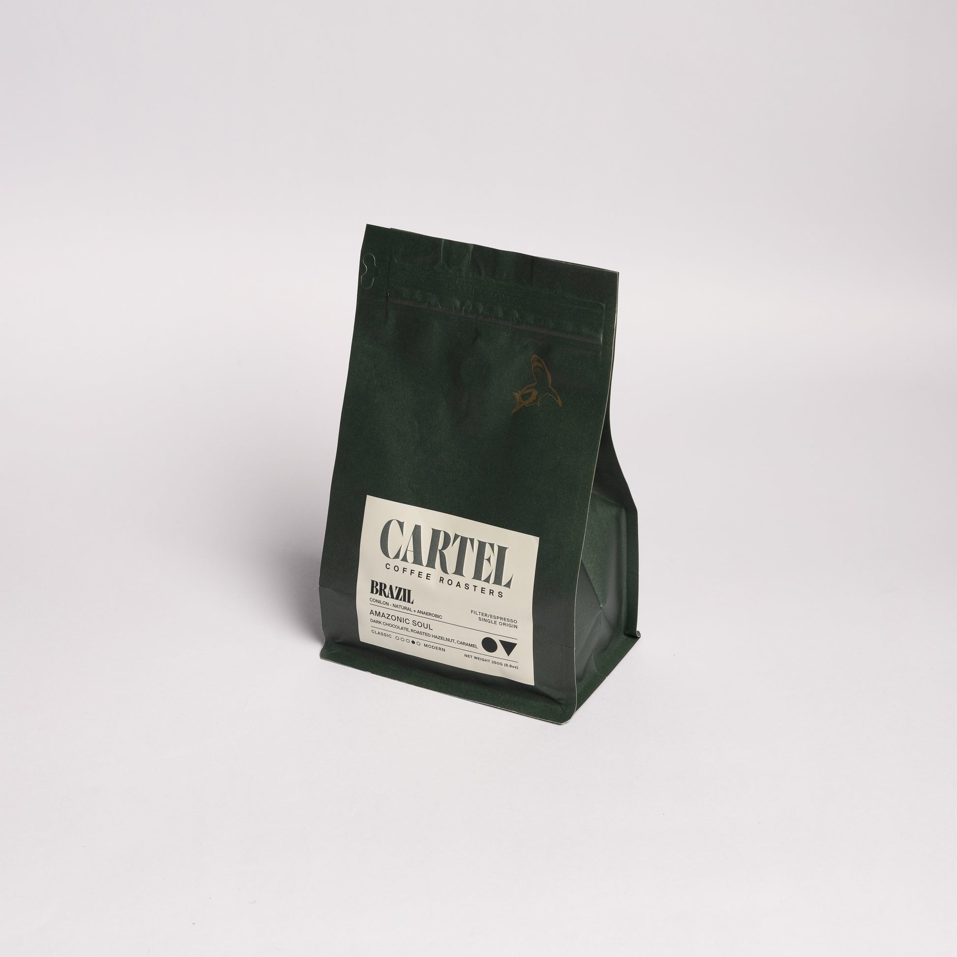 Meet Amazonic Soul—our first specialty-grade Conilon from the heart of the Amazon. This naturally anaerobic-processed bean delivers a bold personality: dark chocolate and roasted hazelnut with whispers of caramel. Versatile enough for filter or espresso, it strikes that rare balance between intensity and silky smoothness. A coffee that's unapologetically strong yet surprisingly refined—the rainforest in your cup.